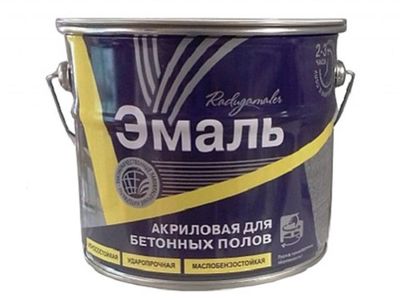 Эмаль для бетонных полов содержит в составе органические растворители, синтетический полимер, синтетические смолы, сиккатив, невыцветающие пигменты, износостойкие наполнители.